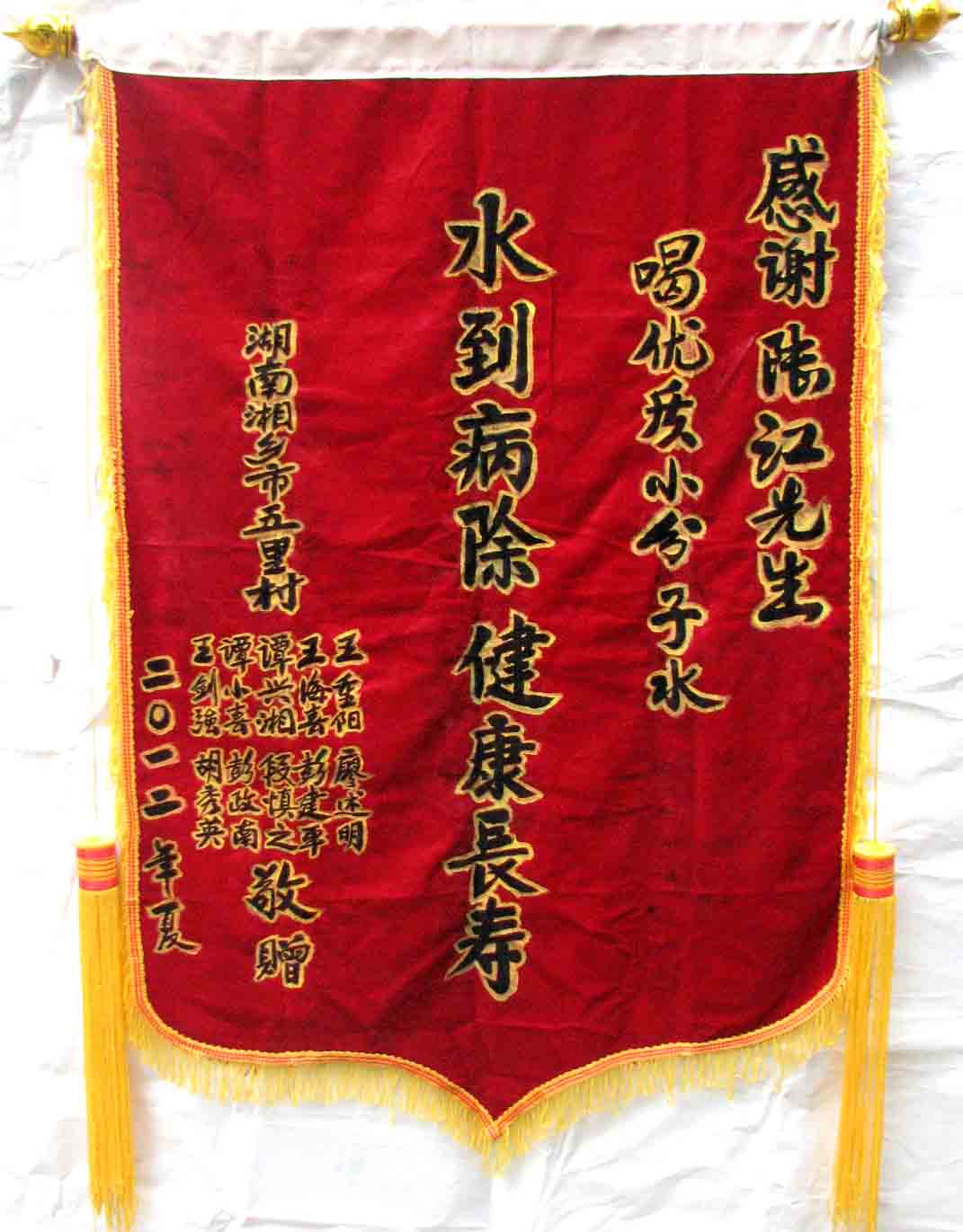 2015年潘志山主動寫一篇感想《我以親身實踐打破了冠心病、高血壓、糖尿病需終生服藥的神話》說堅持按發(fā)明人陸?江先生倡導(dǎo)的用已饑方食的方法合理膳食,我的健康狀況越來越好:糖尿病造成的視力下降有了明顯的恢復(fù),末梢神經(jīng)炎導(dǎo)致的指端潰爛現(xiàn)在完全痊愈,痔瘡自從飲用微小分子團水半年后就再也沒有復(fù)發(fā)過,氣滯血瘀造成的嘴唇暗紫也漸漸變得紅潤,舌下靜脈黑紫消失,足背的動脈由以前的隱約感到跳動現(xiàn)在變得清晰有力。[13]潘先生披露的訣竅,一是飲用微小分子團水給脫水細胞補水,二是已饑方食”養(yǎng)生智慧,患者都能做到。